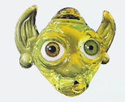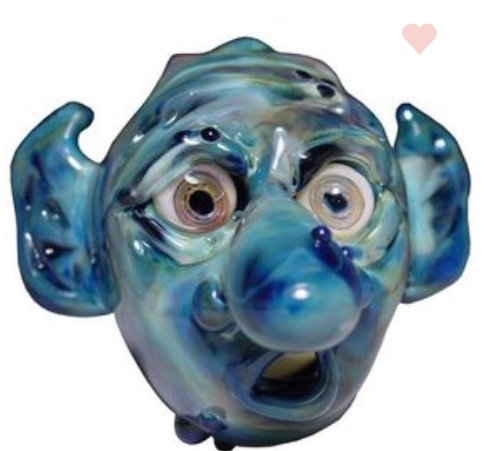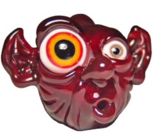 炎の当て方により、薄い金色~ルビー色の発色。 元のガラスは無色に近いガラス。 |