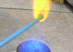 3、バーナーで太いガラスを溶かします![]() |